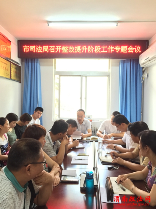 渭南政法网(特约通讯员 高妮 王泽旭)近日,华阴市司法局全体党员干部在局会议室召开了整改提升阶段专题会议,会议由苗健局长主持。
