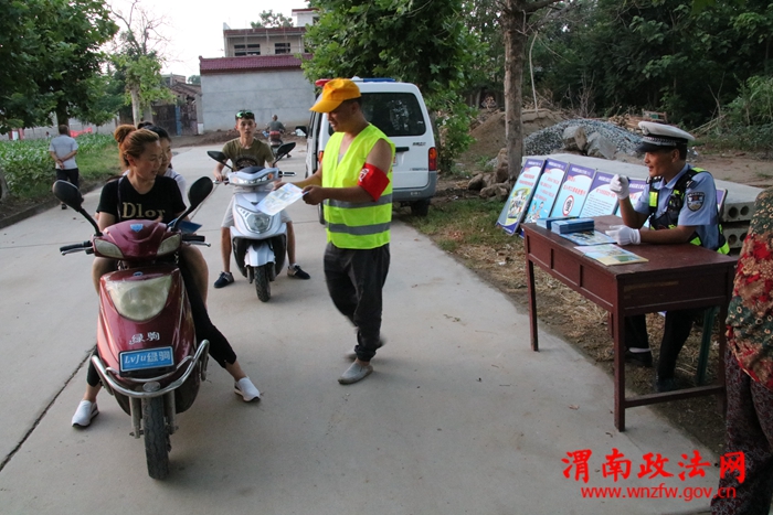 7月6日下午,华山中队组织梁家庄村劝导员,在入村主干道设置交通安全劝导点,对过往的行人、驾驶人开展劝导与宣传活动。重点针对夏季骑乘摩托车不带安全头盔、穿拖鞋驾驶二轮摩托车等交通陋习,民警指导劝导员及时劝导纠正。在劝导交通违法行为行为过程中,民警给群众发放平安建设宣传手册,向群众讲解平安建设的主要任务,普及平安建设相关知识,使群众更加全面了解平安建设工作,号召广大群众积极参与平安建设,警民携手共建和谐家园。
