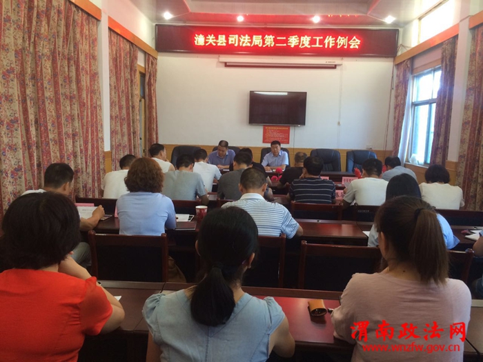渭南政法网(潼关司法局讯) 7月17日,潼关县司法局第二季度点评会暨第三季度工作部署会议在局机关三楼会议室召开。局机关领导班子成员、各司法所长、司法行政干警共24人参会。会议由党组副书记王黎波同志主持。