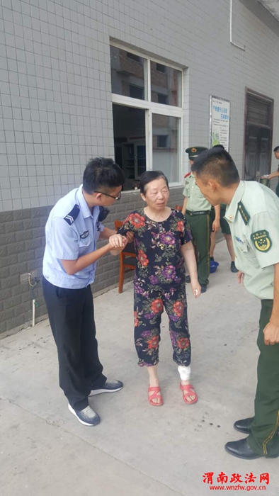 渭南政法网(特约通讯员张小杰 朱昭华)7月25日17点6分,一名老人因天热中暑晕倒潼关公安消防大队门口,导致其腿部受伤,派出所民警、消防大队武警及时给老人左腿伤口清洗、包扎。