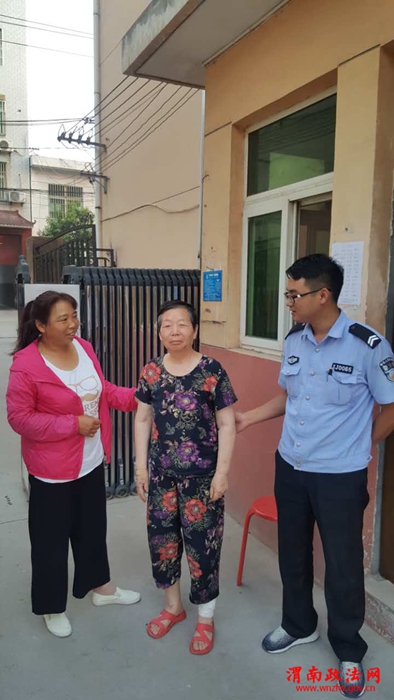 老人中暑并患有脑萎缩神智不清楚,无法说出子女联系方式、家庭地址。派出所民警先将老人带回所里喝水、吃饭解暑,并询问子女与家庭地址,老人只能说出小区名字。民警立即前往该小区查找,一个多小时后,终于打听到老人家庭地址,并及时与其子女联系,将老人安全送回家中交到子女手里。