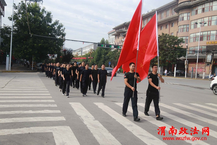 渭南政法网(潼关公安讯)今天是8月8日,“全民健身日”迎来了九周岁生日,潼关县公安局组织全体干警、辅警200余人开展以“警营健步走 快乐你我行”为主题的健步走活动。上午8时40分,队伍在院内集结,着装统一,整装待发!