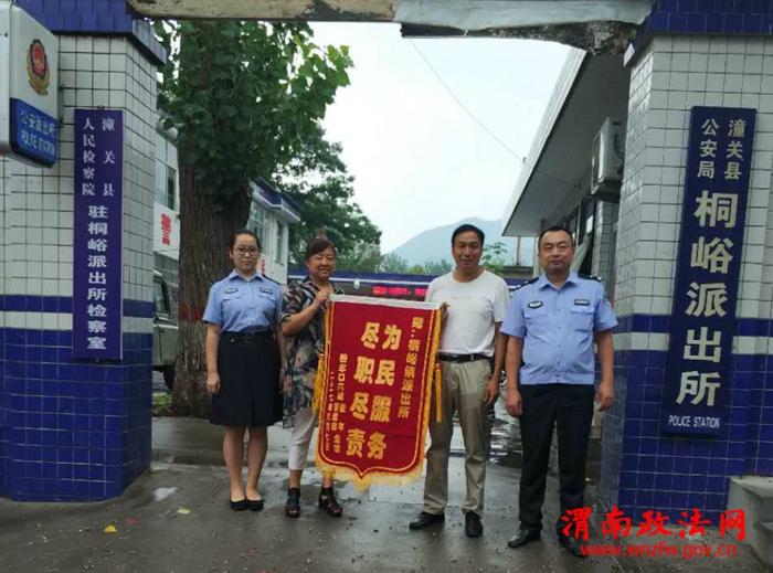 8月7日上午,群众张某持“为民服务尽职尽责”的锦旗来到桐峪派出所,以感谢该所及时为其追回价值万元黄金。