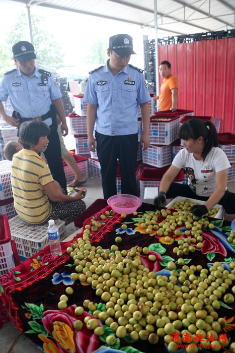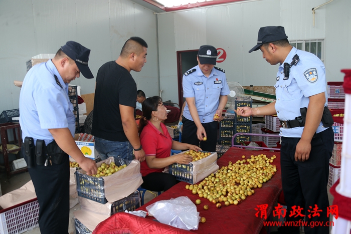 渭南政法网(特约通讯员 李世居 李晓艳)8月11日,在素有“中国冬枣之乡”之称的陕西大荔县安仁镇的冬枣市场,由安仁派出所民警组成的“冬枣流动派出所”深入到交易场地,宣传销售旺季的安全防范和调解销售中出现的纠纷和矛盾,当好枣农当好“保护伞”