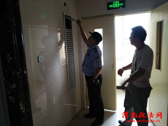 渭南政法网(富平公安讯)为进一步加强高层建筑消防安全管理,杜绝火灾隐患,做好辖区高层民用建筑火灾防控工作,8月14日,渭南富平乔山路派出所民警对辖区内所有居民住宅小区高层建筑开展拉网式消防安全检查。