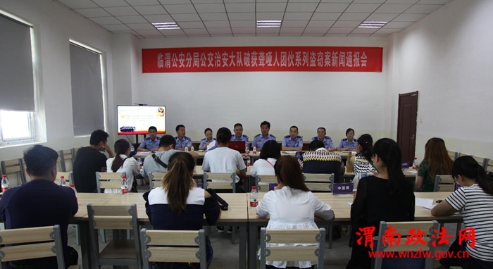 渭南政法网(临渭公安讯)8月24日上午,公安临渭分局公交治安大队破获聋哑人团伙系列盗窃案件新闻通报会在公安临渭分局公交治安大队会议室召开。副局长张战宏,分局相关部门,公交治安大队班子成员及专案组民警参加了会议。并邀请了陕西广播电视台、华商报、西部法制报、渭南广播电视台、渭南日报、新浪网、中国网、荣耀渭南网等多家新闻媒体对此次活动进行报道。