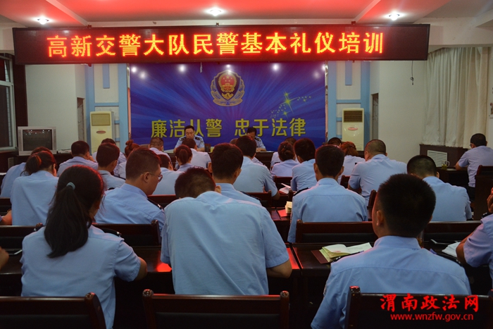 渭南政法网(特约通讯员 吴晓锐)为进一步加强队伍正规化建设,转变民警工作作风,扎实推进执法为民、立警为公的服务理念。8月24日晚,高新交警大队组织民警进行基本礼仪培训。