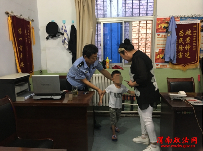 渭南政法网(特约通讯员 张甜苗)8月27日上午,韩城市公安局乔南派出所的值班室来了一位特殊的小客人。家住本市新城区的某女士在姚庄市场附近买菜时,发现一个4岁左右小男孩眼泪汪汪的站在马路中间,周边无大人陪同,疑似与家人走散。好心的女士担心孩子不安全,赶紧把孩子送到了就近的乔南派出所。