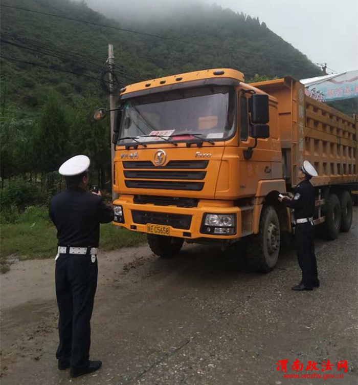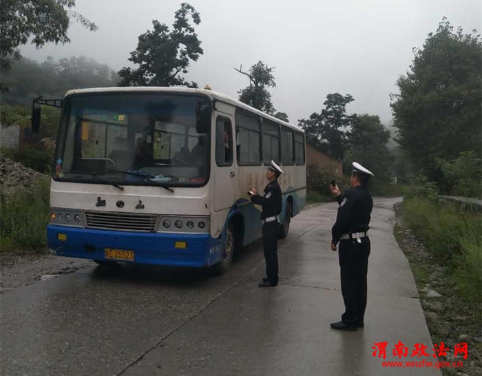 渭南政法网(潼关公安讯)8月30日潼关交警大队矿区中队民警,根据中队勤务安排在辖区桐峪镇黄金路进行安全道路排查,由于连续几天的强降雨,民警进山进行全面排查,对驾乘人员告知提醒,因大雨天气路面湿滑加之弯急坡陡,提示广大驾乘人员,谨慎驾驶、安全出行。