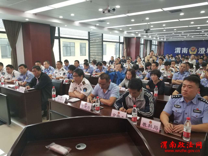 渭南政法网(澄城公安讯)为了严厉打击环境、食品、药品违法犯罪活动,加强公安部门和其他部门案件行刑衔接工作,全力保障人民群众身心健康,8月29日,澄城县公安局在县局二楼会议室举办了为期一天的环食药侦“行刑衔接及刑事实务”工作培训会,县环保局、药监局、食安委、水务局、卫计局、农业局、粮食局、盐务局等15个行政部门负责人、专干、行政执法人员和10个派出所所长、环食药专职联络员共计130余人参加了此次培训。市局环食药侦支队副支队长王怀五、县公安局政委康平出席会议并讲话,县食药监局局长刘涛出席会议,县局党委副书记姚天祥主持会议,市局治安支队行动队大队长张春明、市检察院公诉处检察官王军娜参加会议并授课。