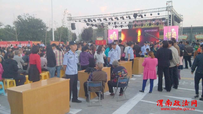 渭南政法网(澄城公安讯)9月10日晚19时30分,第四届丝绸之路文化艺术节巡演在澄城县交道镇中心广场举行。接到安保任务后,澄城县公安局治安大队为了确保活动安全有序、万无一失,及时制定保卫工作方案,勘查现场,成立了以党委副书记姚天祥为组长,治安大队大队长韩永进为副组长、其他单位为成员的保卫工作领导小组。这次活动共出动警力90人,车辆10台,抽调巡特警大队50人、交警大队15人、治安大队15人、交道派出所10人,圆满完成了巡演安保工作。