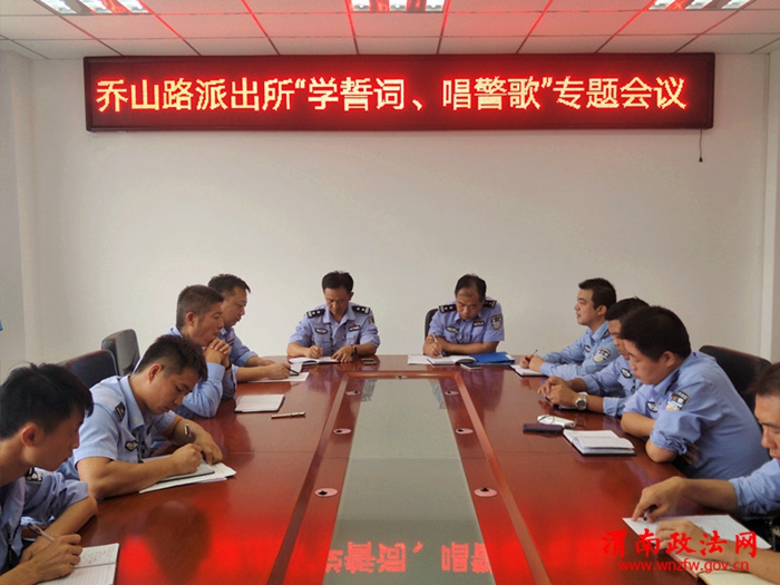 渭南政法网(富平公安讯)为进一步筑牢“对党忠诚、服务人民、执法公正、纪律严明”的崇高理念,更加深入领会了习近平总书记重要讲话精神的深刻内涵,9月15日,渭南富平乔山路派出所召开“学誓词,唱警歌”专题会议。