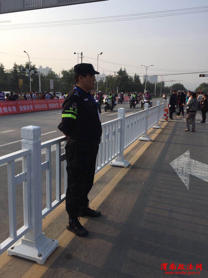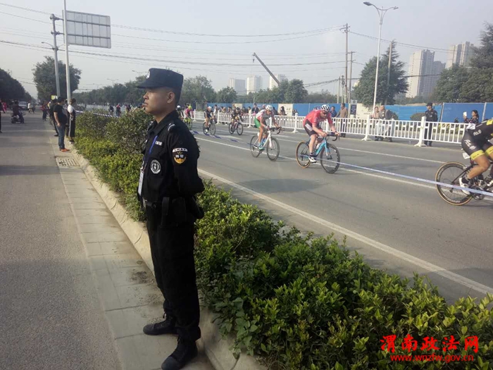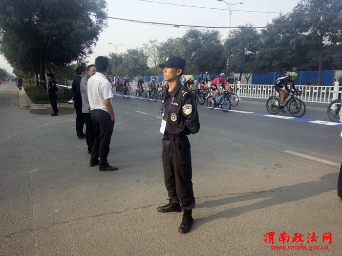 渭南政法网(富平公安讯)9月23日—24日,2017年“丝绸之路”中国.渭南华山国际公路自行车赛在渭南市城区举行,富平县公安局巡特警大队调集50名警力参与此次活动安保任务。