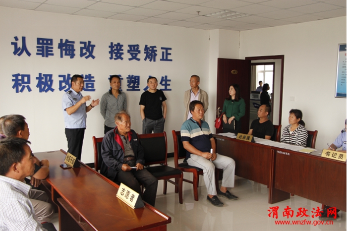 渭南政法网(白水县司法局)9月19日,白水县人大法工委主任张小伟及随行专职委员一行五人对我局优化投资环境,助推“四五六”战略发展工作进行询问督办,并专程对社区矫正工作进行调研视察。实际察看了社区矫正中心的场所建设、硬件办公设备及台账档案管理管理规整情况,了解了社区矫正中心监控管理平台运行情况及信息化建设,现场观摩了对四名社区服刑人员进行社区矫正入矫宣告仪式。