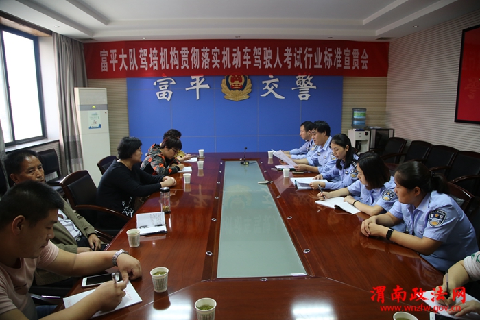 渭南政法网(富平公安讯)9月25日下午,富平交警大队副大队长魏昭晖、车管所副所长任朝红组织辖区7个驾校负责人召开了机动车驾驶人考试系列行业标准宣贯会。