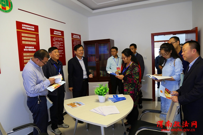 渭南政法网(特约通讯员 张茜瑜)9月26日,由陕西省渭南市、河南省三门峡市、山西省临汾市、运城市共同举办的第八届“晋陕豫黄河金三角区域法治论坛”在渭南市富平县隆重召开。9月27日上午,陕西省法学会副会长杨建军,渭南市委常委、统战部部长、政法委书记、市法学会会长樊存弟,渭南市委政法委副书记、610办主任、市法学会副会长何会民,以及三省四市法学法律界专家和代表共120余人来到富平法院,首先参观了富平法院“法学研究中心”,随后又一同参观了“富平法院传承人民司法优良传统教育室”。此前,9月26日下午,渭南市法学会建设推进会在富平召开,各县市区委常委、政法委书记等50余人到富平法院参观交流。富平法院党组书记、院长党宏军,党组成员、副院长、县法学会副会长康存生,党组成员、副院长李小平等陪同参观。