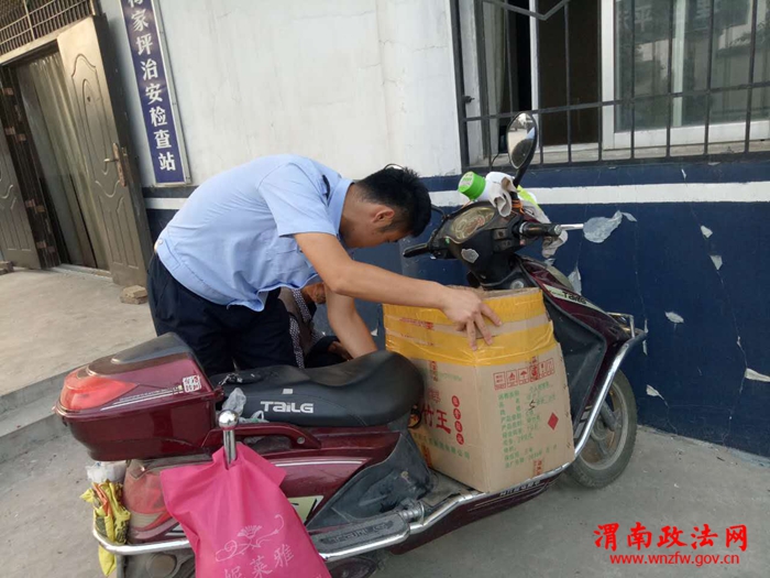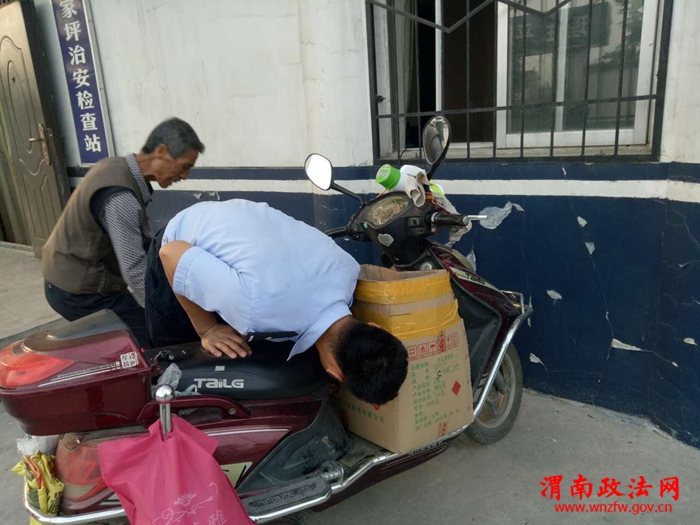 9月28日下午,梅家坪派出所民警在安全检查过程中遇到一电动车停靠路边无法驱使,便下车询问,得知该人家住庄里镇觅子乡,今出门卖蔬菜,没想到菜卖完了,想回家时却发现电动摩托车没电啦。不能使离。他说:“自己在这块也没有熟人,别人也不愿帮忙,我也理解别人怕我是骗子。”