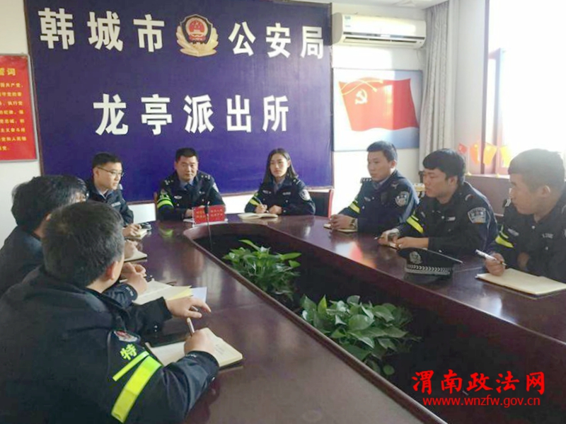 适逢年终岁末,各项工作接踵而来,韩城市公安局龙亭派出所将始终保持着最昂扬的斗志,以最饱满的热情开展好每一项工作,用实际行动践行十九大精神,践行“对党忠诚,服务人民,执法公正,纪律严明”四句话十六字总要求,做最忠诚的人民卫士!
