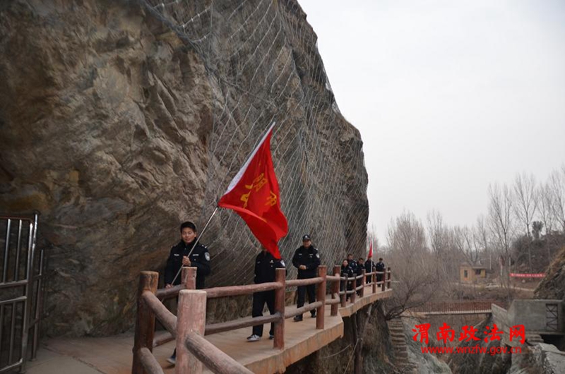 最后,随着一声令下,登高队伍在“华阴市公安局”鲜红旗帜的指引下,迎着凛冽寒风,迈着矫健的步伐,沿指定路线疾步前行,顺着盘旋山路拾级而上。登高途中,大家你追我赶,不甘落后,又相互帮扶,气氛既紧张热烈又轻松愉悦。经过一个小时的攀爬,全体民警辅警成功登顶。