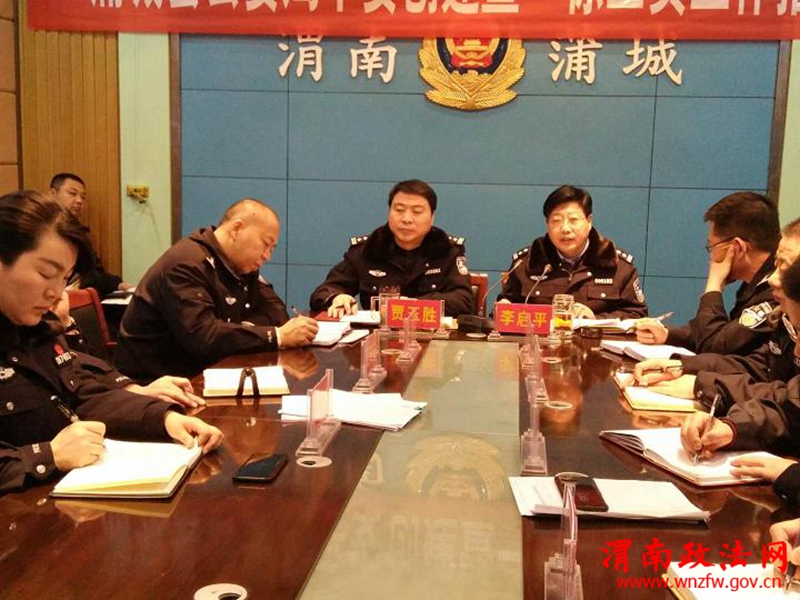 渭南政法网(蒲城公安讯)为全面落实全市公安机关“2018秦剑 华山一号”视频会议和杨市长讲话精神,为2018年各项公安工作开好头、起好步,在经过专题调研、召开党委会的基础上,2018年元月8日,蒲城县公安局召开全县公安机关视频会议,对“2018秦剑 华山一号”行动进行安排部署。局领导班子成员,机关科室、大队负责人,派出所全体民警参加会议,会议由政委贾玉胜主持。