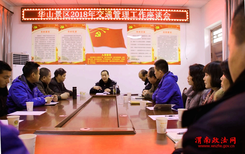渭南政法网(华阴公安讯)为了开创交通管理工作新局面,补齐上年度工作短板,统筹推进2018年华山景区交通管理工作。1月17日上午,华阴交警大队华山中队积极邀请辖区“两代表一委员”及景区相关部门负责人召开2018年交通管理工作座谈会。