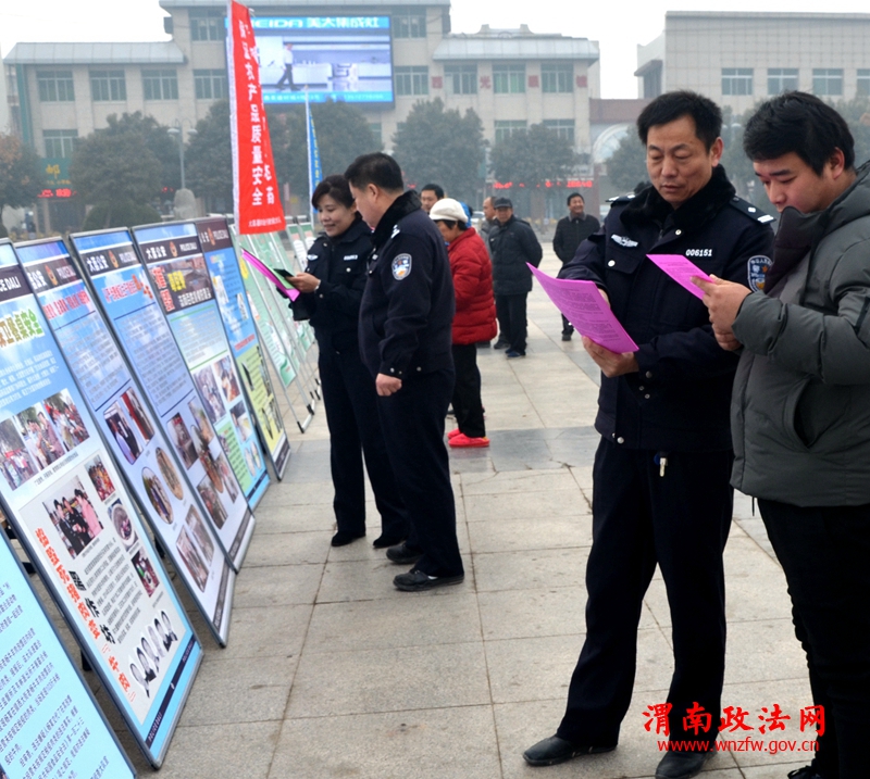 新春佳节即将来临,市场繁荣,购销两旺。为了严防假冒伪劣和有毒有害食品流向百姓餐桌,让广大群众在优美、洁净、喜庆的环境中欢度节日。大荔县公安局与县环保、食药和农业部门于1月12日联手举办“宣传日”活动,以“警民联动保餐桌安全,同心聚力护绿水青山”为题,在县城同州广场展开宣传。他们通过发放传单、图片展出、悬挂横幅标语和现场提供咨询等多种形式,宣传假冒伪劣食品、药品和污染环境的严重危害,号召群众积极举报违法犯罪线索,并就如何保护环境,识别假冒伪劣食品、药品以及有关法律法规向群众提供咨询,解答提出的疑难问题。共散发传单2000多份,观看图片展出万余人,接待群众提供咨询近百人。“宣传日”活动有效增强了广大群众与从业人员在食品药品方面的安全意识、防范意识、法律意识、责任意识,对环境、食品、药品安全引起警觉和重视。在全县形成一个人人关心食品药品安全,个个重视环境保护的良好氛围。