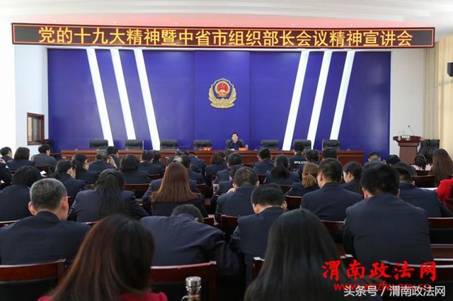 渭南政法网(通讯员 闵婕)在全国上下认真学习贯彻党的十九大精神和习近平新时代中国特色社会主义思想的关键时期,合阳县公安局党委高度重视,把学习贯彻党的十九大精神作为当前和今后的主要工作和政治任务。3月13日,市委非公经济和社会组织党工委副书记、市委组织部“双抓双促”督查组组长孟勋涛同志以党的十九大精神、习近平新时代中国特色社会主义思想、新时代党的建设总要求以及中省市组织工作新安排、新部署为内容,给合阳公安民警上了一堂别开生面的宣讲报告会,合阳县委组织部副部长雷军主持。