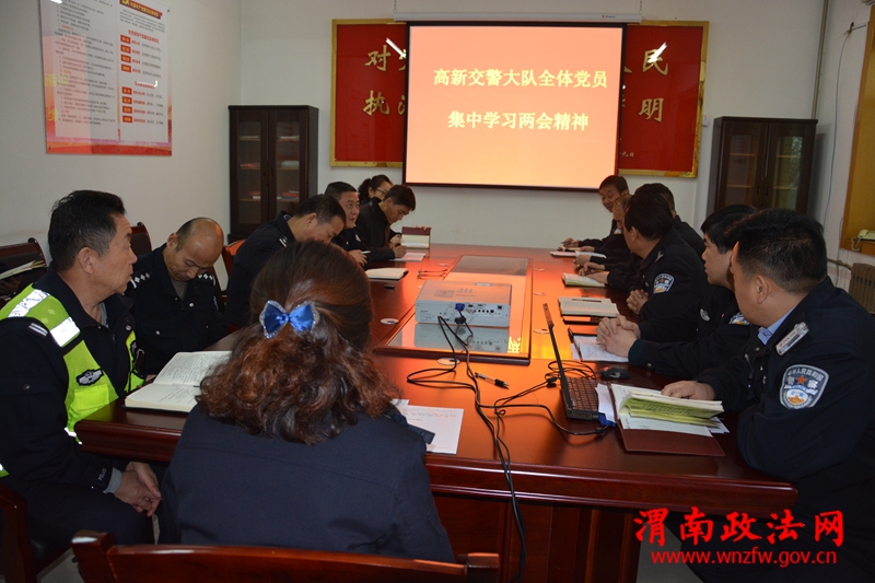 渭南政法网(高新交警大队讯)为把全国两会精神与公安交警工作有机结合,整体推进队伍管理,提高民警政治素养,3月19日上午,高新交警大队组织全体党员学习两会精神。
