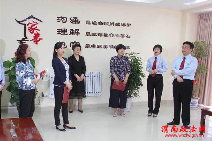 渭南政法网(通讯员 杭洁)5月4日,陕西省妇联副主席林海君、省妇联权益部部长荆聪英、省妇联权益部副处级调研员曾建怀、省妇联儿童部主任科员陈迪彬一行4人莅临蒲城法院调研家事审判工作,渭南市妇联主席张红丽,市妇联维权宣传科科长段晓莉,蒲城县委常委、统战部长王振华,县妇联主席孙晓燕,蒲城法院党组书记、院长王玉琦等人陪同。