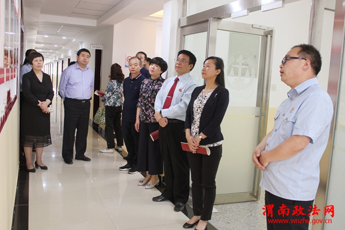调研过程中,林海君副主席一行在王玉琦院长的引导下陆续参观了该院的家事审判庭、心理咨询室、亲子室、谈话室、温情调解室、党建文化墙、道德讲堂、院史•荣誉室等。大家边走边看,详细了解了家事审判中心的建设情况、推进情况及取得的成效。