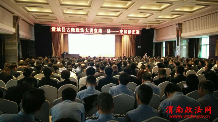 渭南政法网(通讯员 李卫锋)5月11日上午,“古徵政法大讲堂”第一讲正式开讲。大讲堂由澄城县委政法委主办,旨在进一步提升政法队伍法治素养、打造澄城政法铁军,提高全县干部依法行政能力、加速法治澄城建设,为建设富裕美丽人民满意新澄城保好驾护好航。是政法工作“抓首要、保稳定、争一流、促发展”的重要举措。