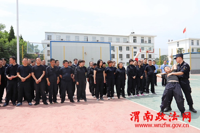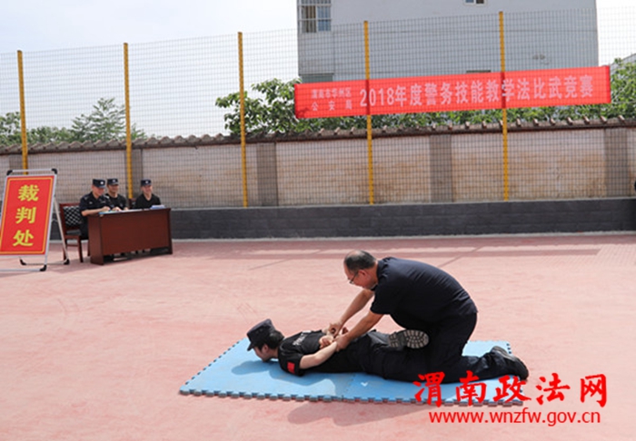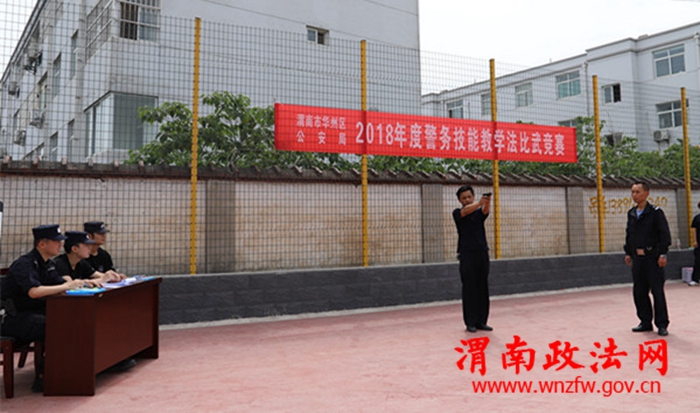 渭南政法网(华州公安讯)为进一步推进全局教育训练工作深入开展,切实提高民警警务实战能力, 5月24日,渭南市华州区公安局组织全局在职在编年龄45周岁及以下民警80余人在咸林中学操场开展警务技能教学法、警务战术比武竞赛活动。