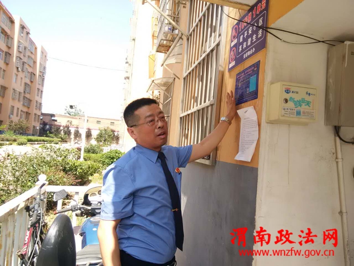 在县城居苑路、站南路、雷公路、居苑小区等路段和小区,检察干警身穿制服,不畏炎热,烈日下在门店、单元楼入口和群众大门口等处张贴“建设平安白水共享幸福生活”宣传牌,汗水湿透衣背,干警们边张贴边向群众宣传平安创建。在一家便利店门口张贴宣传牌时,热情的老板拿出矿泉水和毛巾给干警,并说道:“咱们白水越来越平安,离不开你们政法部门,大家的居住生活环境会越来越安全。”