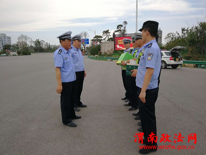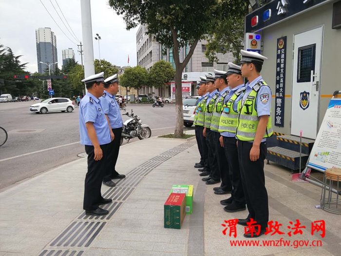渭南政法网(通讯员 吴晓锐)6月13日下午,大队长王晓文带领副大队长刘全红、交通秩序管理中队长姬治国慰问酷暑天气下坚守在一线的执勤民警。