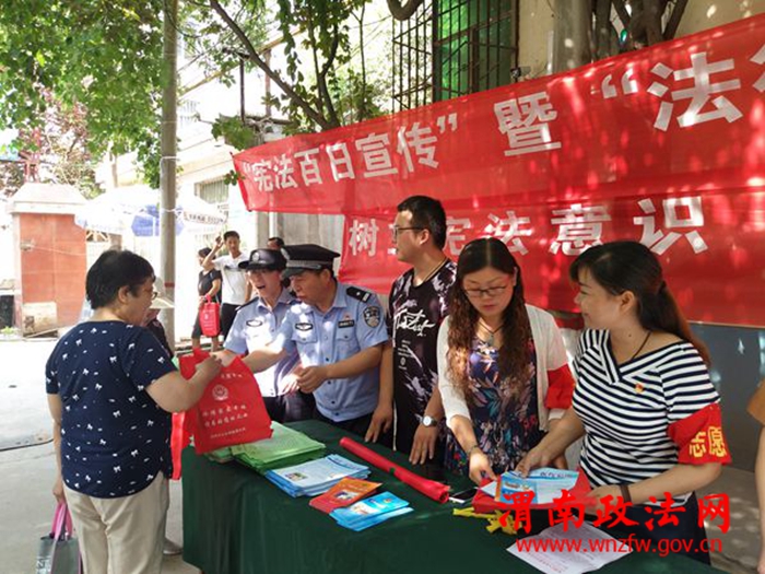 渭南政法网(临渭分局讯)为大力弘扬宪法精神,维护宪法法律权威,树立宪法至上观念,维护宪法的权威和尊严。近日,公安临渭分局环北路派出所党支部联合人民办宣化社区党支部、临渭区食品药品管理局深入临渭区乐天大街中段兴达小区开展宪法百日宣传活动。