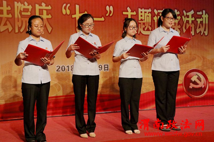 诵读节目采取部门单独或共同的方式,由党员法官干警精心选排,自编自演,诵读内容主题鲜明,积极向上,充分展示了法院党员和干警的精神风貌。