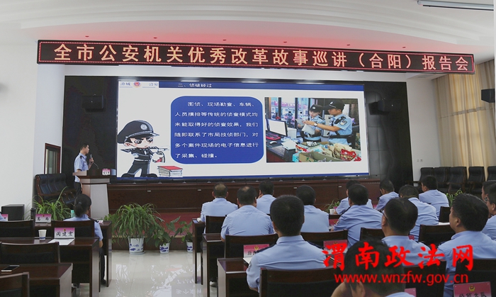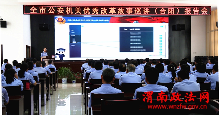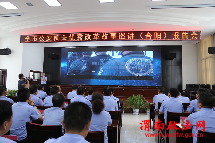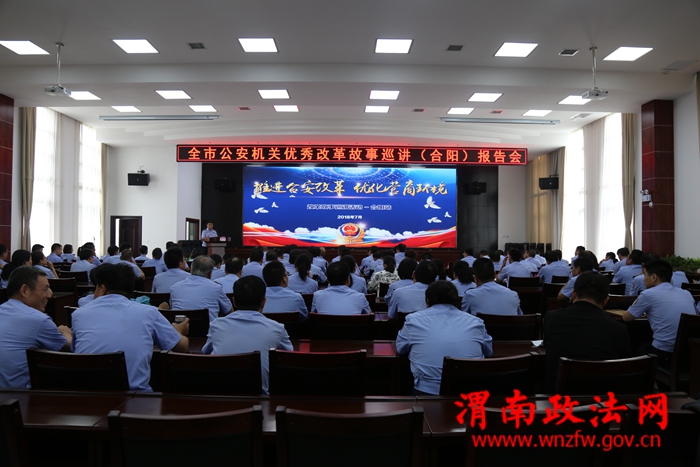 渭南政法网(通讯员 张贺琴)7月4日,应合阳县公安局邀请,渭南市公安机关优秀改革故事巡讲团深入合阳举办报告会,将全市公安改革的累累硕果带进基层,将改革的春风吹进合阳公安民警的心田,引起强烈反响。合阳县公安局领导、全体民警200余人参加报告会。
