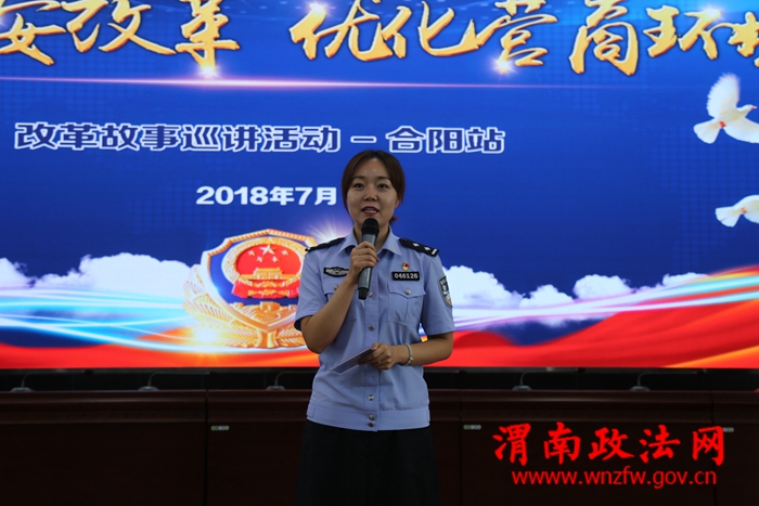 这次全市公安优秀改革故事巡讲团带来的10个改革项目,是从全市各级公安机关改革项目中优中选优选取出来的,涵盖了公安工作的方方面面。每一个改革故事,都来源于基层一线,都经过理论的探索和实践的检验;每一个改革故事,都闪现着基层民警智慧的火花,都展示着新时代公安机关追赶超越的干劲。临渭分局民警贺山珊讲述了警用无线数字集群(PDT)通讯系统在可视化、扁平化指挥中的巨大威力;大荔县公安局民警陈琳讲述了农村社会治安分级管理系统在实现治安治理中的精准高效;合阳县公安局民警魏源志讲述了合成作战在支撑打击破案、服务实战中的强大作用;韩城市公安局民警高星讲述了用科技发明为民警筑起的安全屏障;澄城县公安局民警高尚讲述了人民币冠字码在破案中的独特优势;白水县公安局民警张梦瑶讲述了二维码警务新模式给基层工作带来的便利;蒲城县公安局民警王宁讲述了利用信息化系统对扫黑除恶专项行动带来的变革;富平县公安局民警赵鹏讲述了利用即时通讯工具提高实名制监管水平的成功做法;华州区公安局民警程瑶讲述了机制创新在化解和预防信访案件中的工作经验;高新分局民警金小平讲述了利用“钉钉打卡”管控吸毒人员的新模式。巡讲团带来的每一个改革故事,都对破解基层公安难题、提升公安核心战斗力都具有很强的启迪、推广、孵化效果和推动作用,巡讲团成员的精彩演讲,展示了新时代渭南公安的开拓创新精神,赢得了参会民警的阵阵掌声。