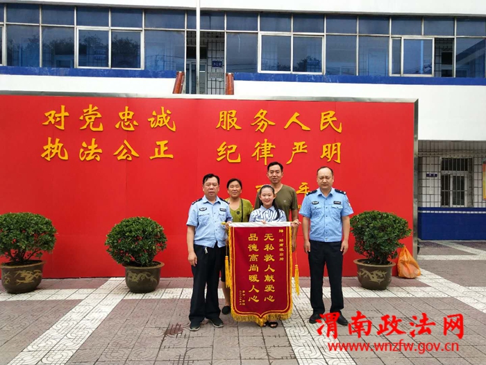 7月5日下午,公安临渭站南派出所来了三位“特殊的客人”,他们手拿红色锦旗,“无私救人献爱心,品德高尚暖人心”,特地来感谢站南所民警把独自上街的80多岁老人家平安送回家中。