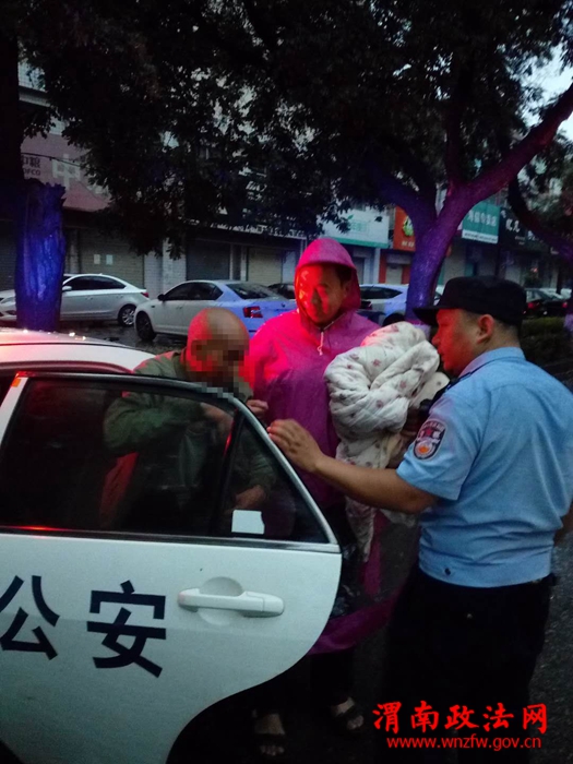 7月4日凌晨3时30分左右,站南派出所接一群众报警,称:派出所以东100米左右的公厕里的椅子上坐着一位八旬的老人,身上裹着一床被子,已在椅子上一动不动坐了两个小时。值班民警接报后,立即赶赴现场,发现老人神志恍惚。民警一边安抚老人,一边耐心询问老人的情况。老人吐字有些不清,也记不清楚自己的家庭住址,只知道自己的家在附近。当天渭南天降大雨,天气微凉,为避免老人生病,民警将老人先安顿在值班室,并为老人拍摄了照片,遂冒雨在解放路附近进行走访询问。由于时间较早,路上行人稀少,功夫不负有心人,5时30分左右,民警在解放路饮食服务公司巷道里,找到了老人的妻子。不一会,民警将老人安全送到家中。