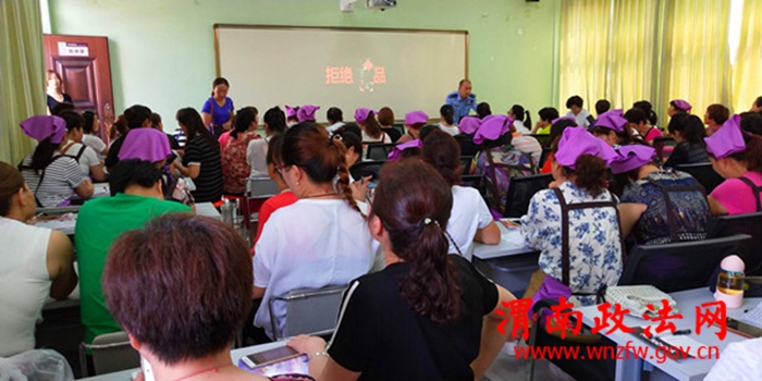 渭南政法网(通讯员 李娜)为切实做好禁毒社会化宣传工作,提高家嫂识毒、防毒、拒毒的意识,动员广大妇女群众积极投身禁毒整治斗争,7月6日上午,渭南市华州区公安局禁毒大队利用举办“华州家嫂”培训班这一契机,开展禁毒宣传活动。