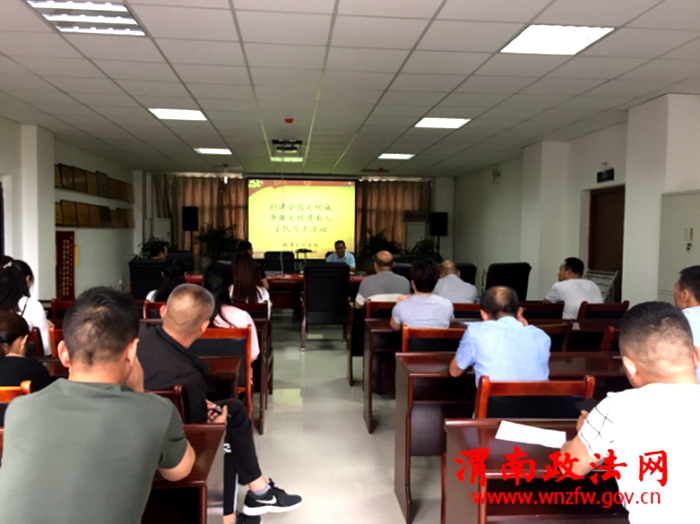 活动共三项议程:首先由临渭区司法局党组副书记文逸平做了动员讲话并宣读了“创建全国文明城 争做文明渭南人”倡议书,然后由单位代表宋刚主任进行了发言,最后全体机关干部进行了签名活动。