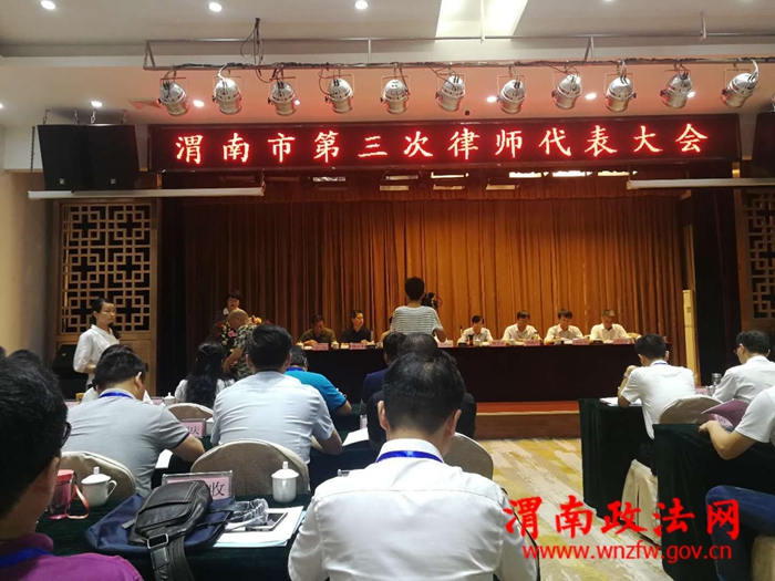渭南政法网(通讯员 穆新蓉)2018年7月10日至11日,渭南市第三次律师代表大会在渭南市祥龙宾馆隆重举行。陕西省律协、渭南市委、渭南市中级人民法院、渭南市检察院、渭南市公安局、渭南市司法局等相关单位领导应邀出席会议,全市80余名代表及特邀代表参加会议,其中我县2名特邀代表、5名律师参加了本次会议。会议由渭南市司法局党组书记、局长安延会主持