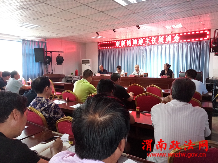 渭南政法网(通讯员 李曼丽 )为进一步加强和推进人民调解员队伍建设,全面提高人民调解工作水平, 7月13日,蒲城县司法局和桥陵镇政府联合召开人民调解员培训会,对桥陵镇30个村的调解主任进行了业务知识培训。司法局党组成员屈旭东、镇人大主席邢西建、司法所全体成员及司法局基层股同志参加了此次会议。