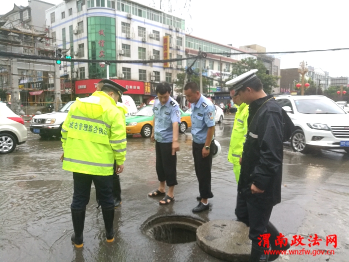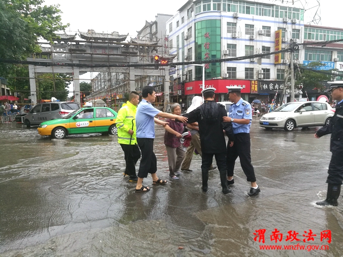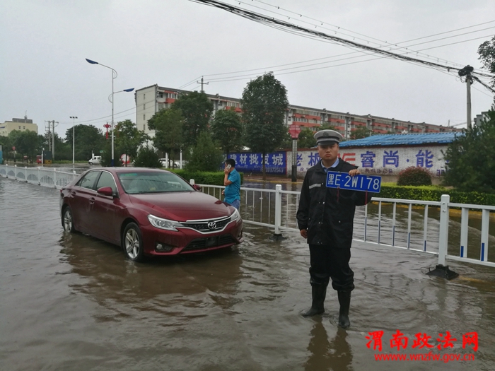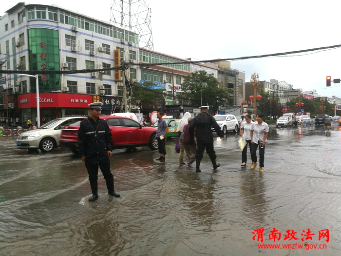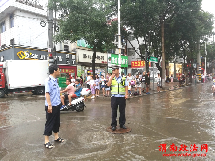 渭南政法网(通讯员 蔺滨滨)7月16日下午4时许,一场突如其来的特大暴雨袭击了古城潼关,雨情就是警情,潼关县交警大队城区中队迅速启动恶劣天气紧急处置方案,安排部署民警在县城各个主要街道和路口巡视执勤,确保广大人民群众的交通安全。