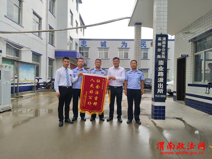 渭南政法网(通讯员 赫永梅)7月16日,辖区恒大房地产开发有限公司负责人将一面写有“社会活雷锋、人民好公仆”的锦旗送到了渭南高新公安分局崇业路派出所,对派出所民警心系企业、护航发展、恪尽职守、造福一方的精神和行动表达了由衷的感谢。