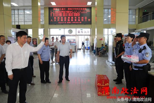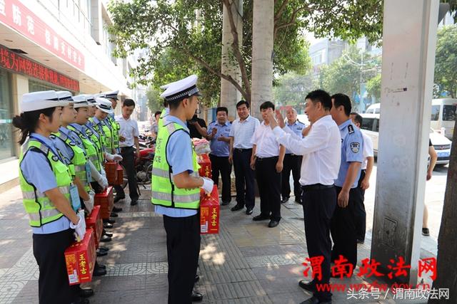 渭南政法网(通讯员 李毅)7月22日上午,渭南市华州区区委书记霍文军,区委副书记蒋会海,区委常委、常务副区长孟渭川,区委常委、统战部长韩佩,区政协副主席、公安局党委书记、局长师正利等一行,专程到新秦路交警女子形象岗、华州客运站警务室、消防大队等处,看望慰问冒着酷暑坚守在一线的执勤民警及消防员,并为一线民警送上了矿泉水、毛巾、香皂、风油精等防暑降温物品,送来了一丝“清凉”,带来了一份“关爱”。