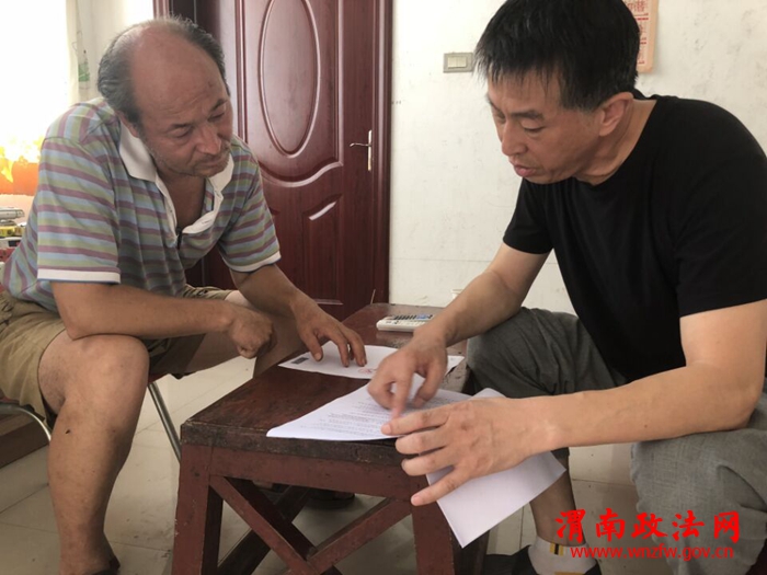 渭南政法网(通讯员 赵晖 陈晓蓉)近日,华州区人民检察院诉讼监督部接到市院交办的案件后,控申部门同志根据案件进行集中讨论分析,发现当事人是位上访七、八年的老上访户,法律上已给予他相应的赔偿,但当事人仍有不满,依旧奔跑于司法机关不停上访。全科干警意识到此案的重要性,马上行动,查阅资料依法办理,按程序本可以传当事人到检察院谈话,但员额检察官李飞越说:“我们最好亲自到上访人吴某家去,一是天气炎热,不要让上访人往返奔跑;二是在他家给他拉拉家常,聊聊法律知识,争取化解上访人积怨”。7月20日,顶着38度高温,李飞越、杨颖两位干警驱车三十几公里来到高塘镇涧峪口村南一组上访户吴某家见到了吴某。