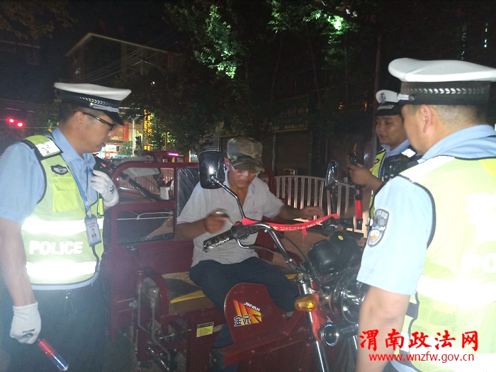 7月24日23时许,很多市民早已准备上床入睡。街道上除了过往的车辆外,一些夜查酒驾的交警们引起了大家的注意。潼关交警大队潼洛中队民警在县城主要路口、路段,手持酒精测试仪,对过往车辆进行检查。