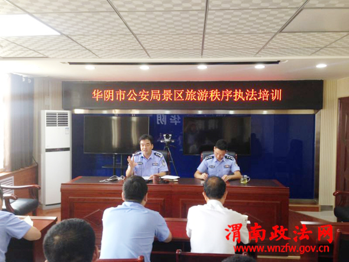 为确保打击整顿工作有序开展,执法行为文明、规范,案件办理高效无瑕疵,8月14日,华阴市公安局召开景区旅游秩序整顿执法培训会。参加培训的有华阴市旅游警察执法大队、景区四个派出所、综合执法局、景区管委会等多家部门的工作人员。培训由法制大队副大队长李江锋主讲。主要就景区违法行为处理的执法方式、执法尺度、法律适用及执法效果进行重点讲解!
